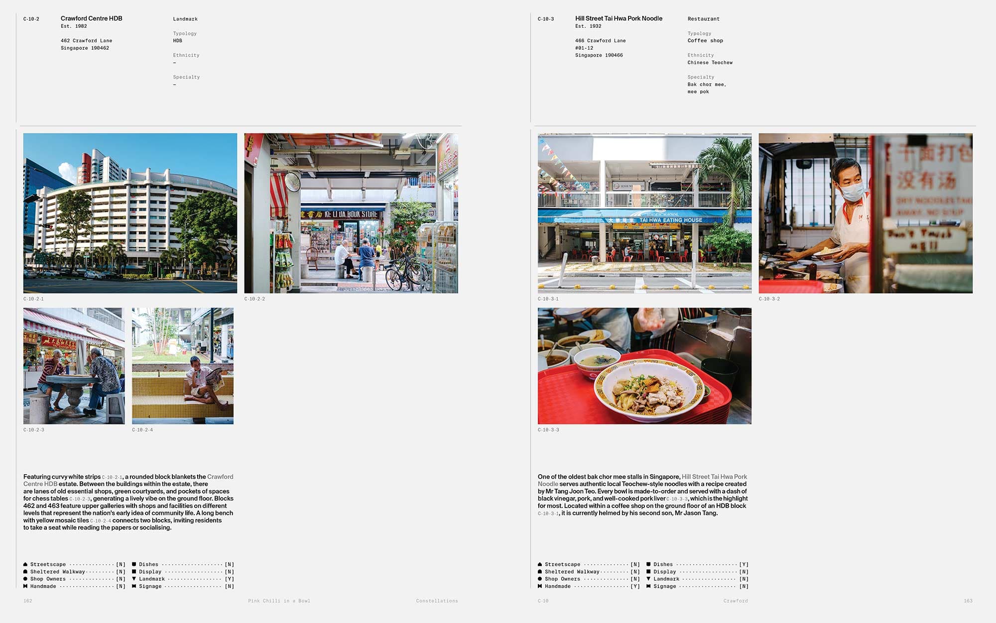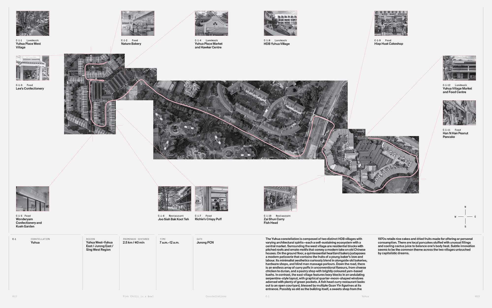 “Pink Chilli in a Bowl” is an invitation for the curious explorer to venture beyond the surface of Singapore’s urban landscape through twenty-eight constellations. Each constellation—composed of a network of local establishments, architectural landmarks, and places of worship—can be described as a sensual voyage, enriched by the art of everyday eateries and a multifaceted street culture. Unveil hidden links between seemingly disparate and diverse spaces that showcase the lesser-known humanistic side of an automated nation.