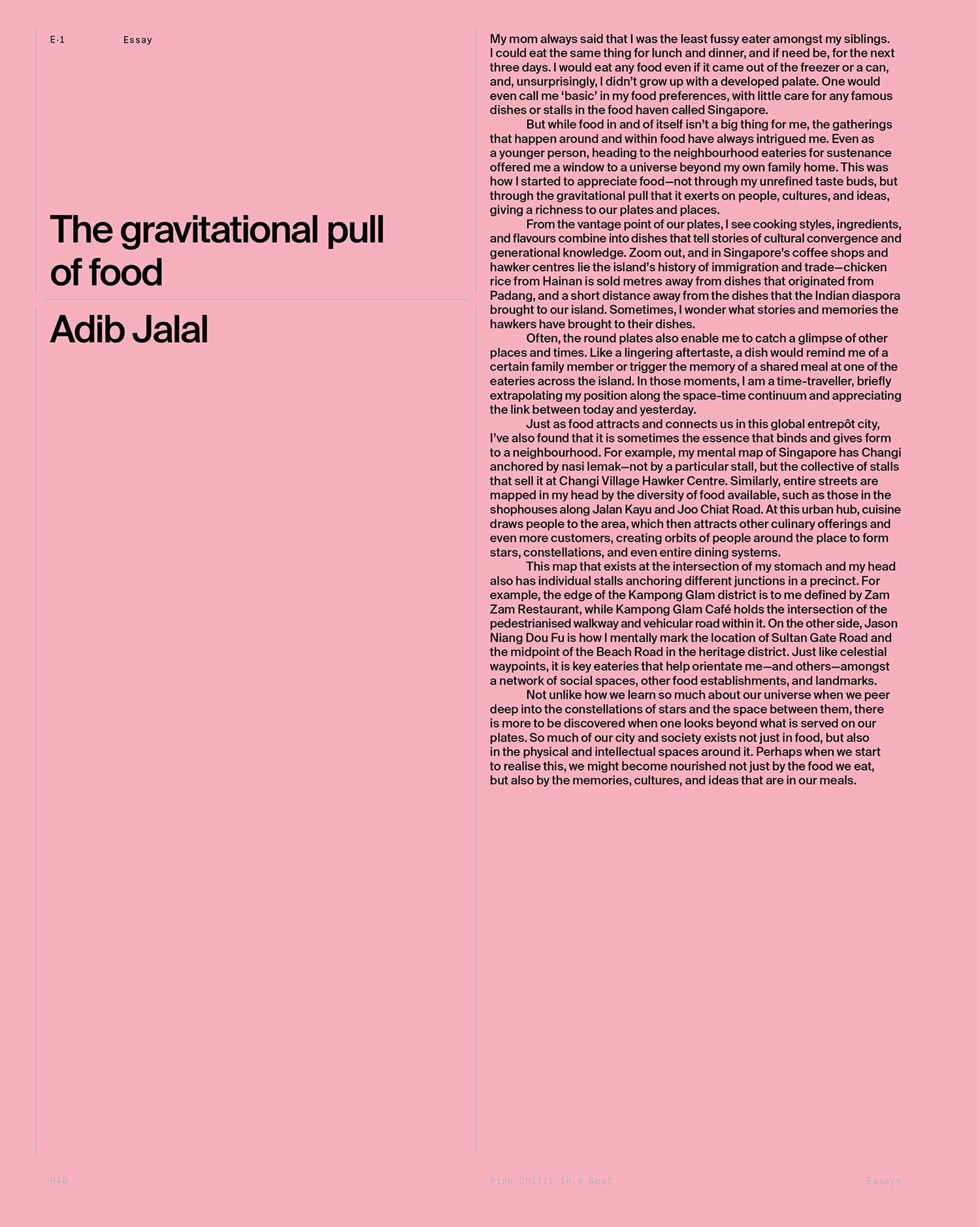 The Essays are contributions made by food-enthusiastic writers about Singaporean eateries which contextualise the current survey into the specifics of the social, cultural, and political environment in this island-nation.